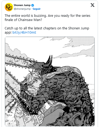 A notícia foi divulgada nas redes sociais da publicação, que provocou os fãs com a mensagem: “O mundo inteiro está em polvorosa. Você está preparado para o episódio final de Chainsaw Man?”.